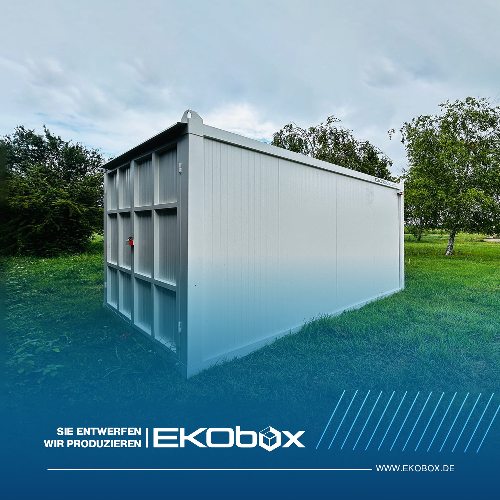 EkoBox Lagercontainer werden aus robusten Stahlrahmen mit isolierten Paneelen gefertigt und bieten optimalen Schutz vor Witterungseinflüssen. Sie sind stapelbar, abschließbar und individuell konfigurierbar – für jede Art von Lagerbedarf.